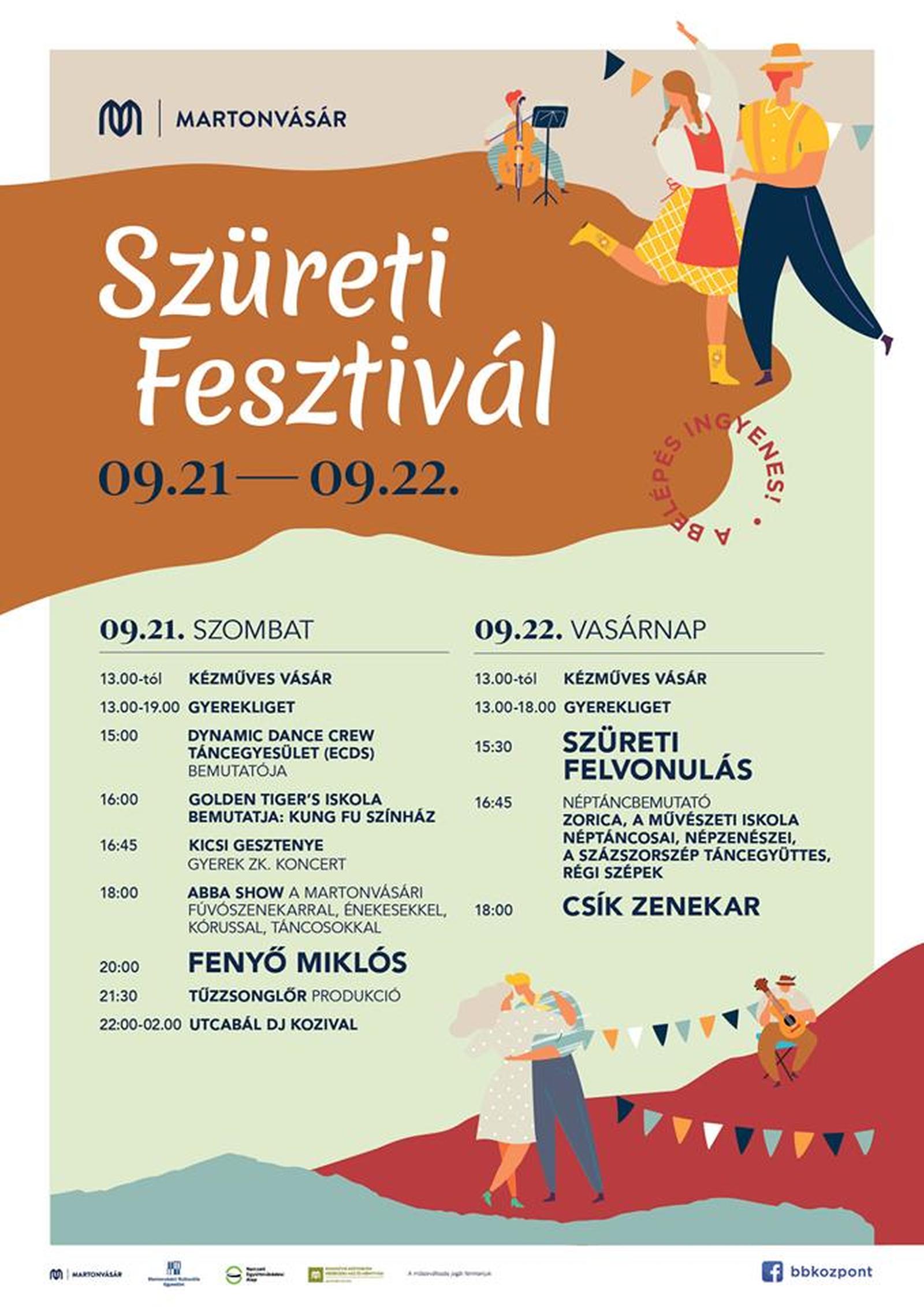 A kétnapos fesztiválon kézműves vásár, gyermekprogramok, könnyűzenei fellépők, szüreti felvonulás, helyi közösségek műsorai és népzenei zárókoncert is mind-mind a programot színesítik.