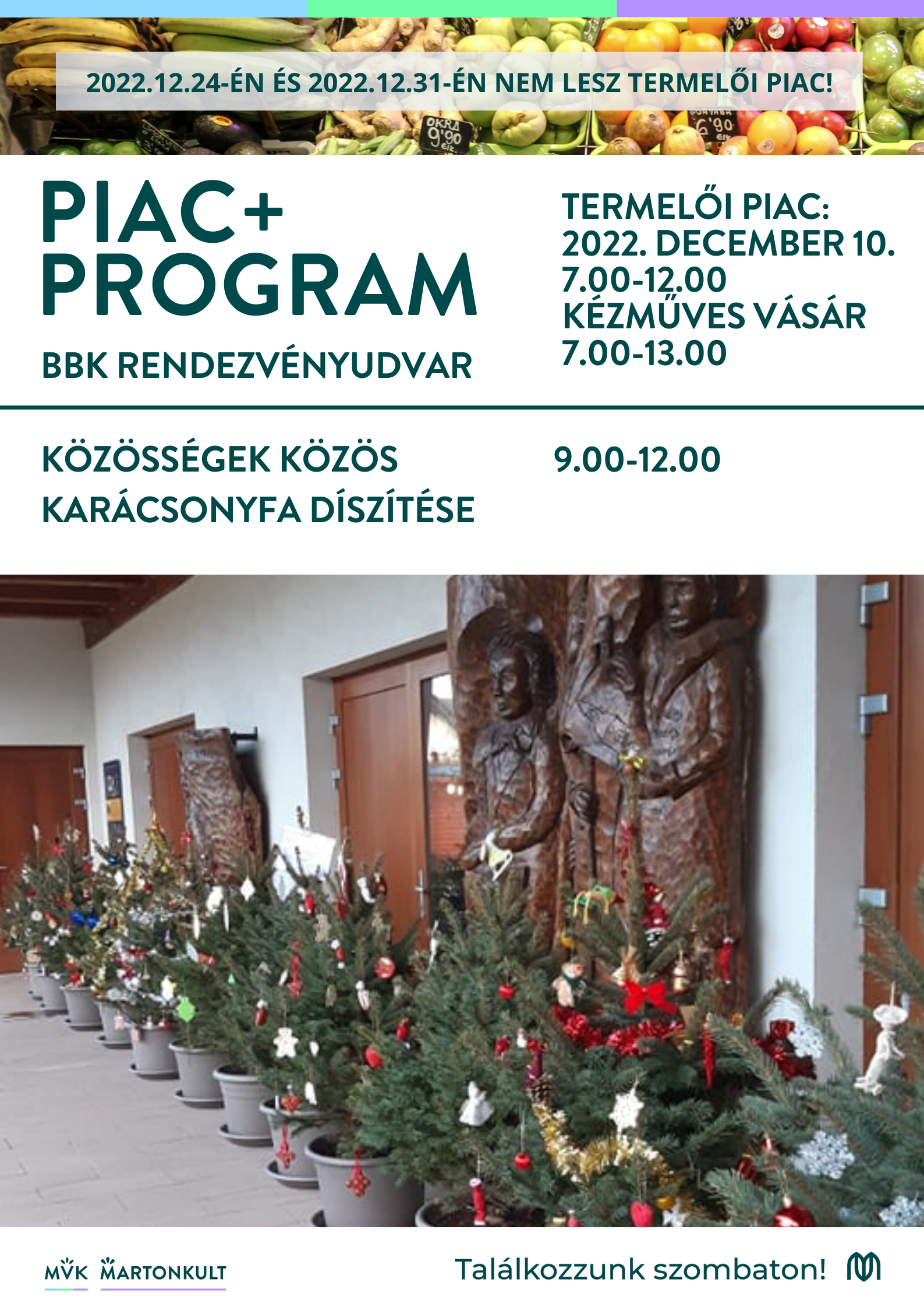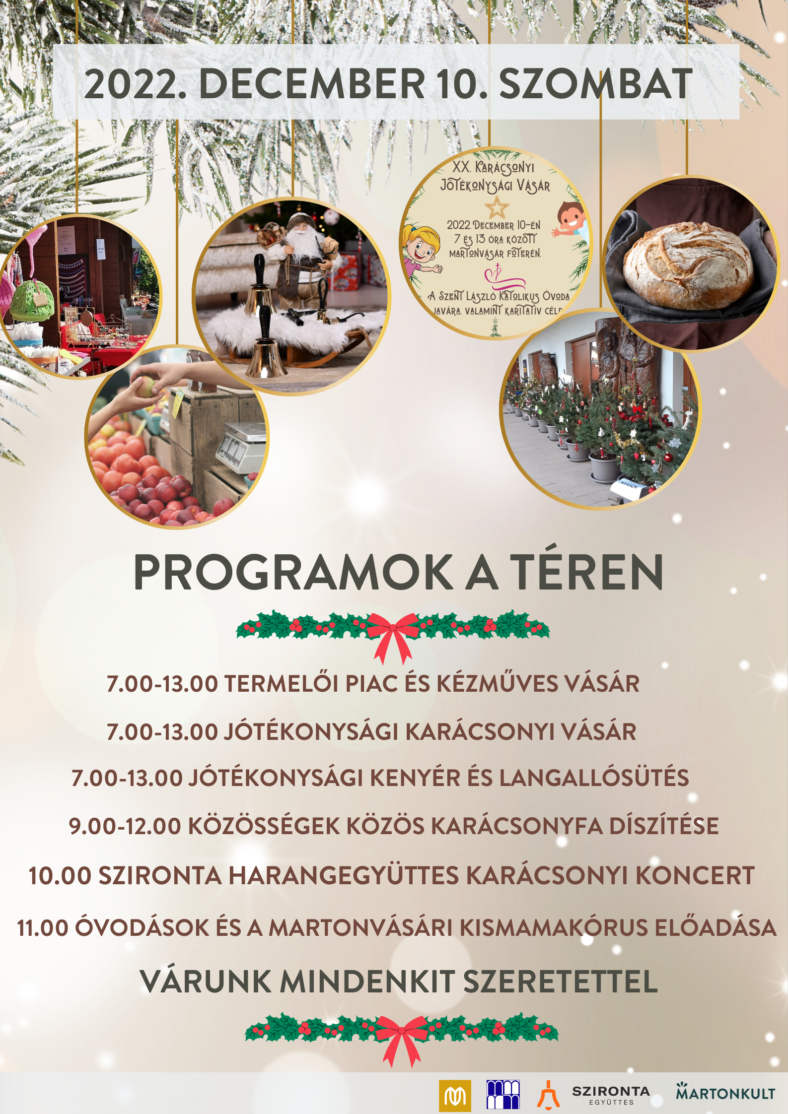 • 7.00–13.00 Jótékonysági Karácsonyi Vásár
