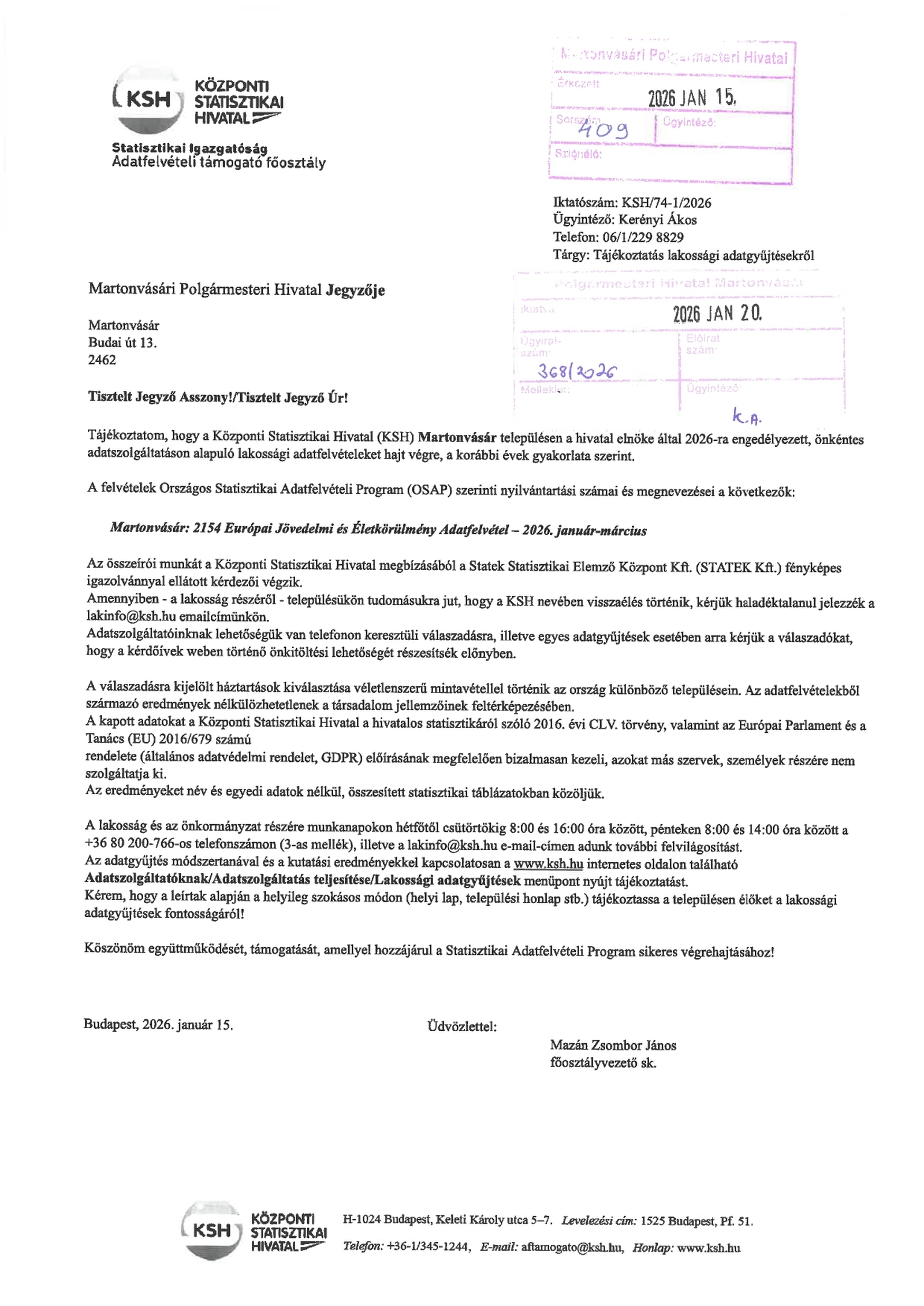 Tájékoztatás a Központi Statisztikai Hivatal lakossági adatgyűjtéséről
