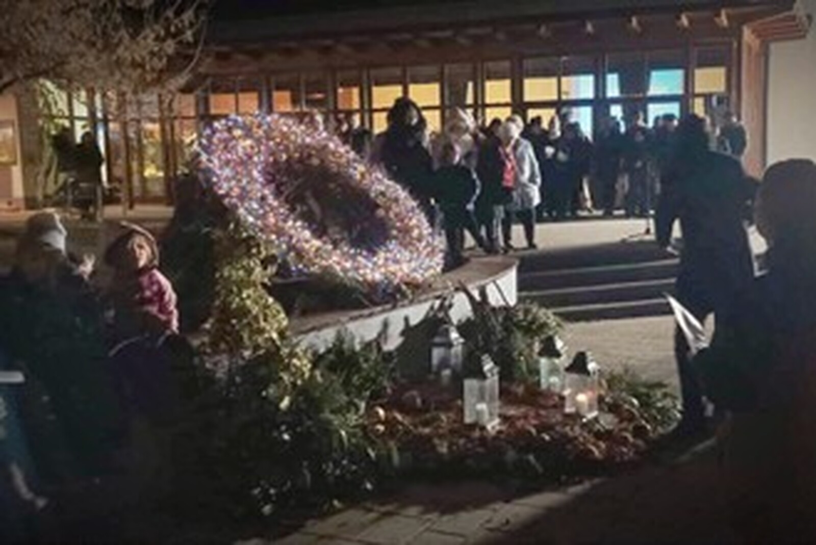 A készítőknek megköszönve a város adventi koszorúját, Tordas-Gyúró Evangélikus Egyházközség lelkészei gyújtották meg az első gyertyát a délután öt órakor kezdődő alkalmon. A kiosztott kották alapján felcsendült a gyülekező emberek éneklése, majd Bence Győző áhítata hangzott el.