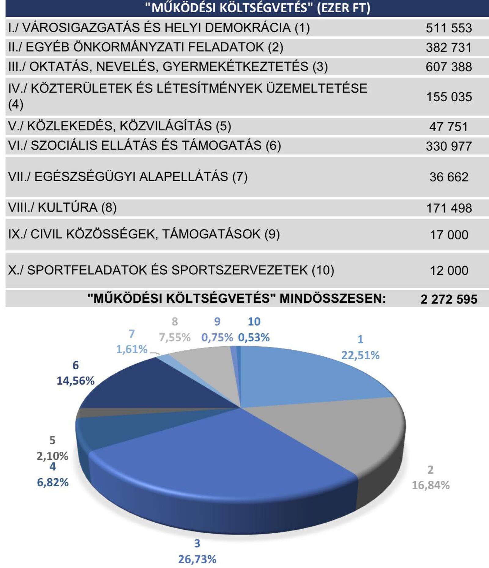 A működési költségvetésünk 2272,6 millió Ft, vagyis mintegy 2,27 milliárd forint,