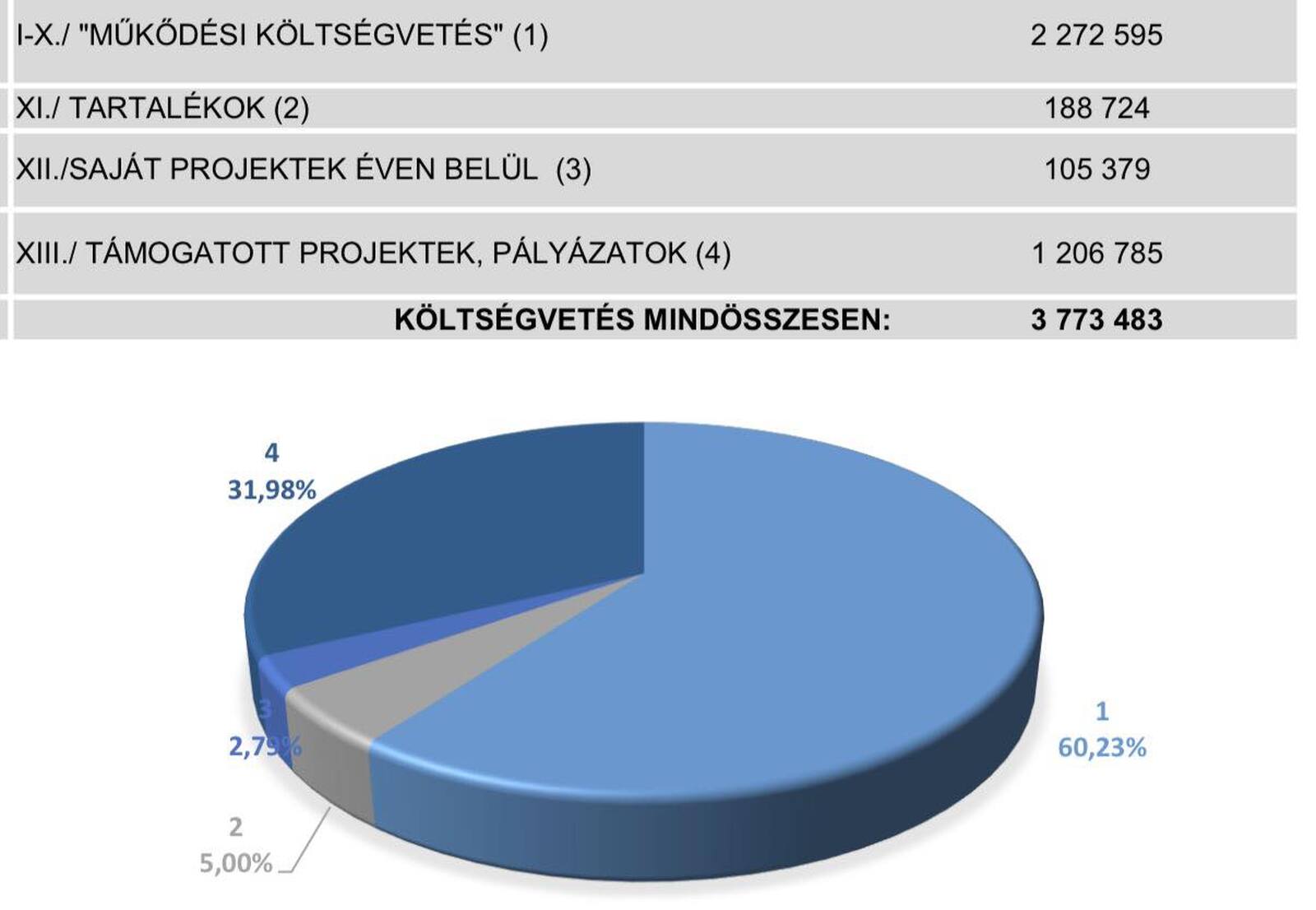 A kiadási és bevételi főösszegünk: 3,773 milliárd Ft.