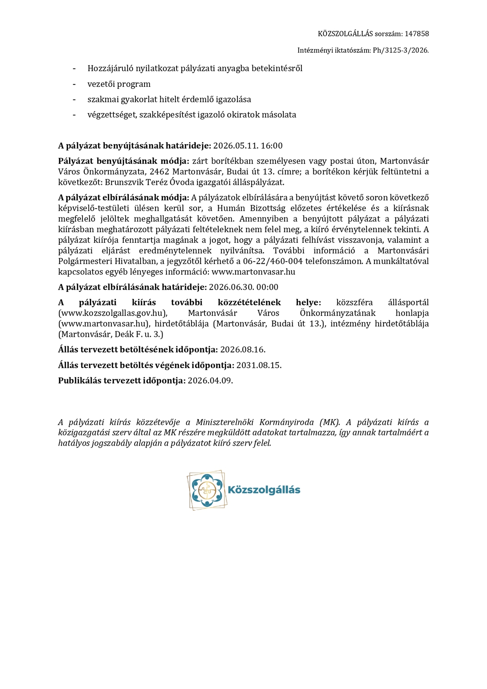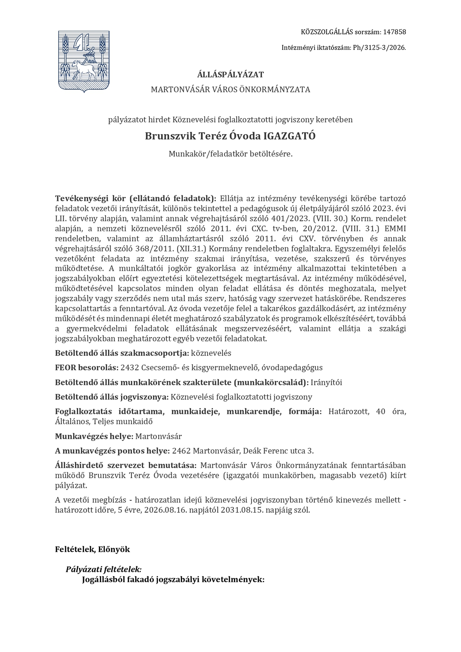 Igazgatói álláspályázat - Brunszvik Teréz Óvoda