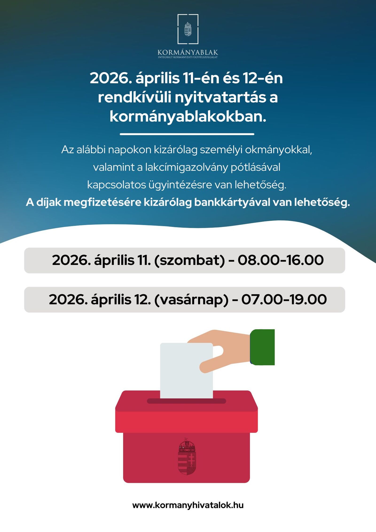 A Kormányablak rendkívüli nyitvatartása
